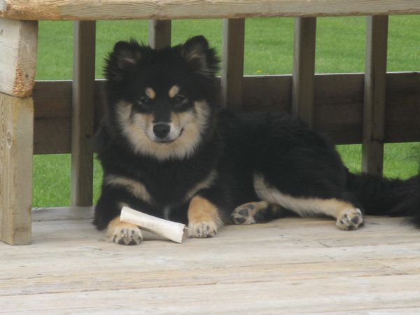 After having 1 Finnish Lapphund we needed another. It turns out Skyla is Gracie’s niece. She is a real character that is full of energy and tons of fun! She has many sheltie friends and sometimes I think she acts like one with “bouncing” energy. She loves to go to agility classes and we hope to compete soon. She is at the smaller end of the standard for a female FL, is very well balanced and a delight to show with her “happy” tail. Her wolfsable colouring is so pretty.