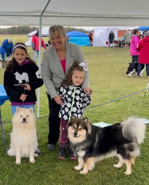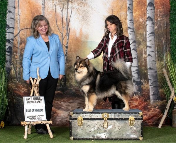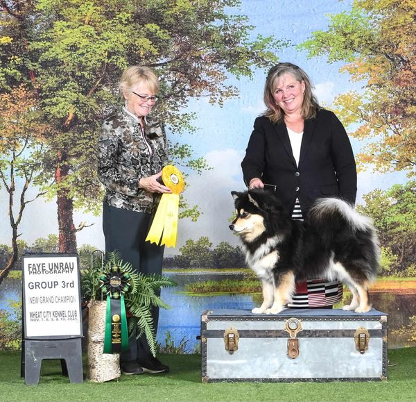 Poppy is a great great granddaughter to our Fergie (Shadagrace I Gotta Feeling) SO we kept the theme going. On other side of pedigree she is also a great granddaughter to our Asha (Shadagrace Sweet Dreams). Poppy's sire if 4 time National Specialty best in show winner Ukko (BISS GCH Yutori's Suomifoxfire O'Bearspaw). Poppy really matured into a pretty girl. She has had 2 really nice litters and Nov 2024 got her Grand Championship. I hope to start rally with her in the new year and get her to August National Specialty before her last litter.